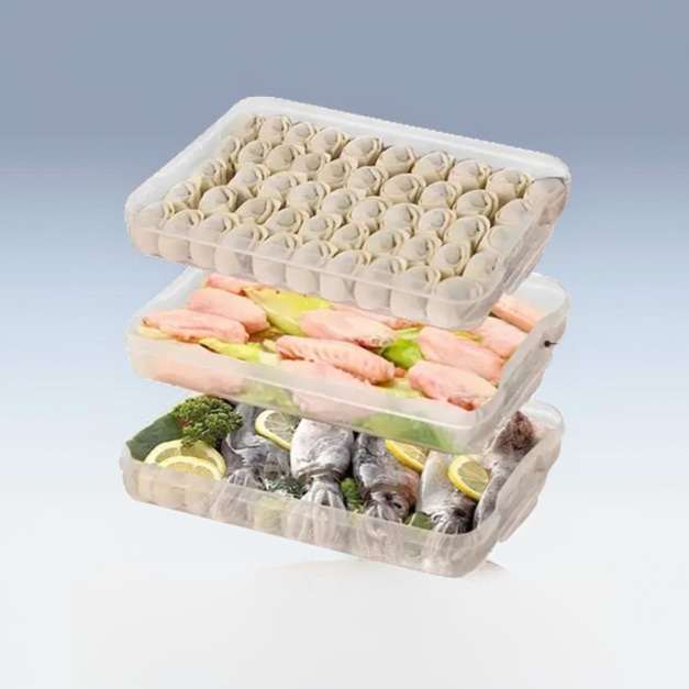 多層密封設計で餃子の鮮度を長持ち。家庭用冷蔵庫に最適、整理しやすい多機能トレイ。冷凍保存も簡単、スペース効率向上。